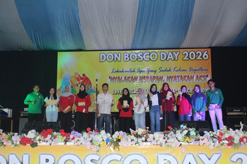 Setiap tahunnya, Don Bosco Day dirayakan dengan penuh sukacita dan kebersamaan. Tahun 2026 ini menghadirkan suasana yang tidak kalah meriah. Dengan mengangkat tema “Nyalakan Harapan, Nyatakan Aksi” Berbagai kegiatan diselenggarakan untuk melibatkan siswa, staff, alumni siswa maupun alumni instruktur, mitra kerja serta perwakilan sekolah di sekitar lingkungan don bosco. Beragam acara menarik mulai dari pentas seni yang di isi oleh penampilan yang memukau dari siswa Magang BCA , DBD Fast 2026 Perlombaan band yang di ikuti oleh Pelajar SMA, hingga Permainan Kreatif yang mencerminkan semangat Bosco . membuat Don Bosco Day terasa begitu hidup dan berkesan. Setiap peserta menunjukkan kreativitas, semangat sportivitas, serta rasa persaudaraan yang kuat. Tidak hanya menjadi ajang hiburan, perayaan ini juga menjadi pengingat akan nilai-nilai yang diajarkan Don Bosco: kasih, kepedulian, dan semangat untuk terus berkembang.